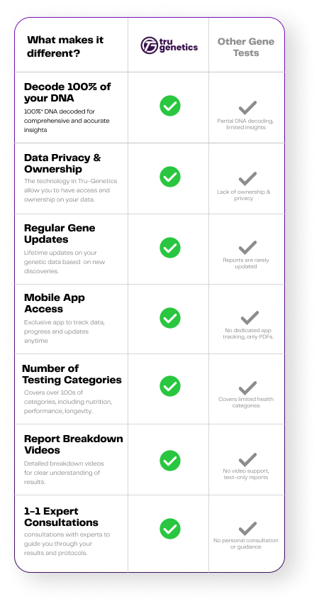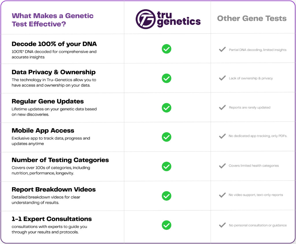 Overall, you can expect Tru-Genetics to deliver highly accurate and scientifically validated results, but it’s important to understand that genetic testing gives probabilities and risk factors, not guarantees about health outcomes or traits.